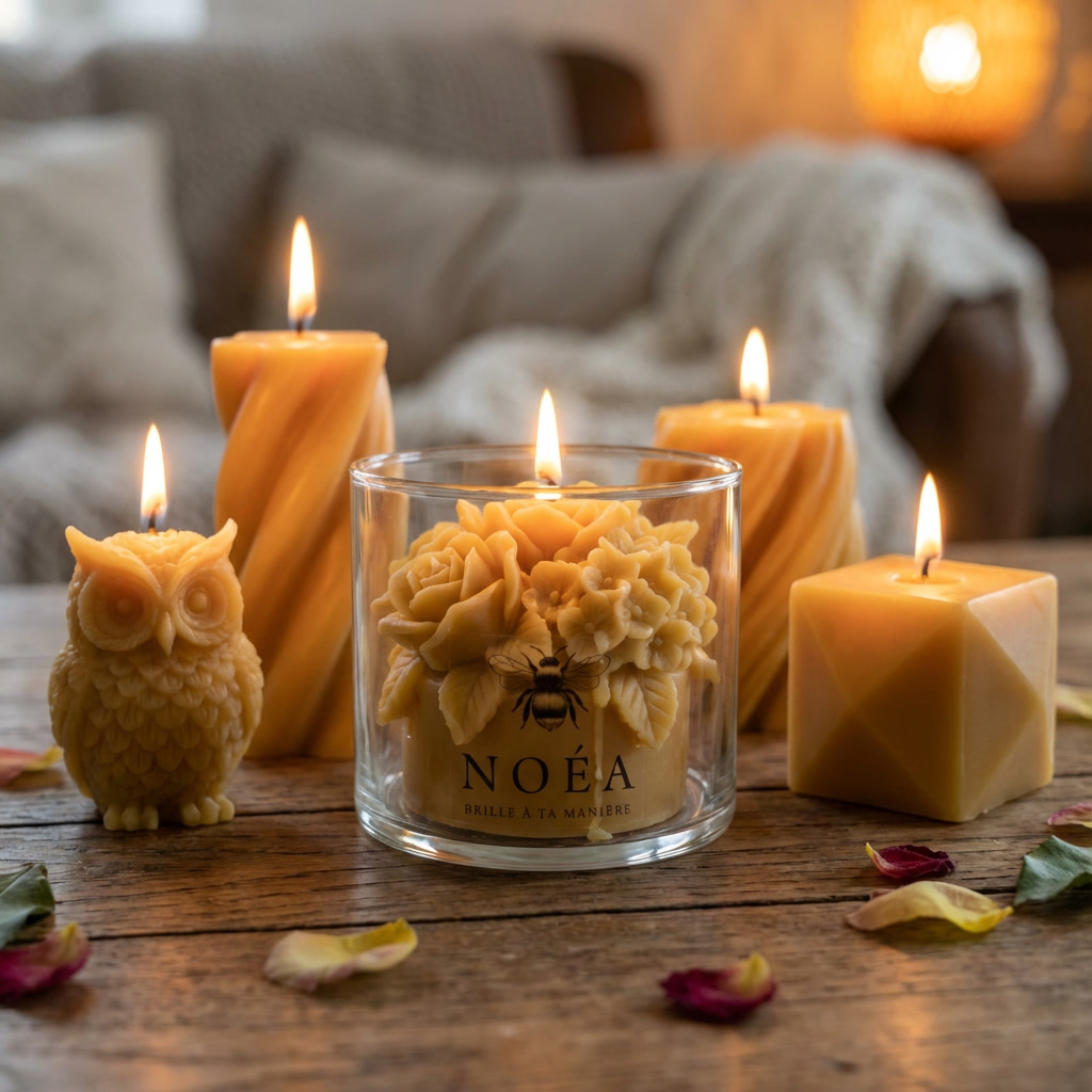 la cire d’abeille diffuse une lumière chaleureuse et une douce odeur naturelle de miel. Chaque création, qu’elle soit en forme de hibou ou de vase, allie esthétisme et artisanat pour sublimer votre intérieur.